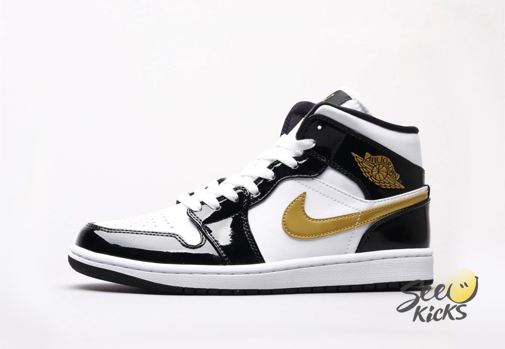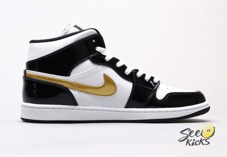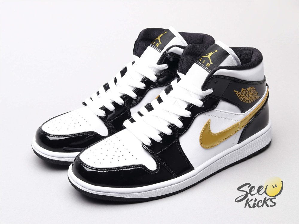 Air Jordan 1 Mid Patent Black White Gold 36-46